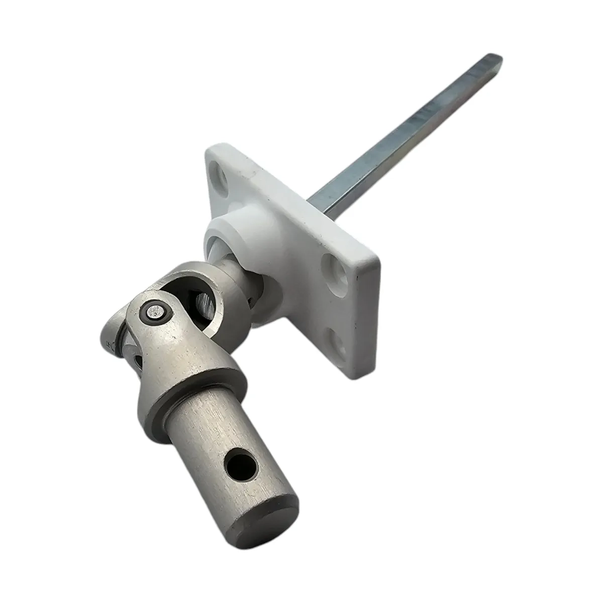 Sortie de caisson simple à 45° blanc, fixation en sous-face, C6mm, pour manivelle Ø 15mm, Lg tige: 160mm