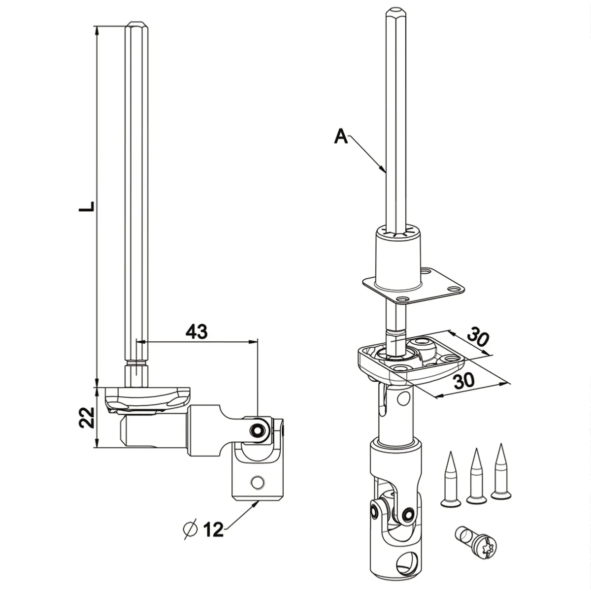 Tige de sortie : acier zingué passivé