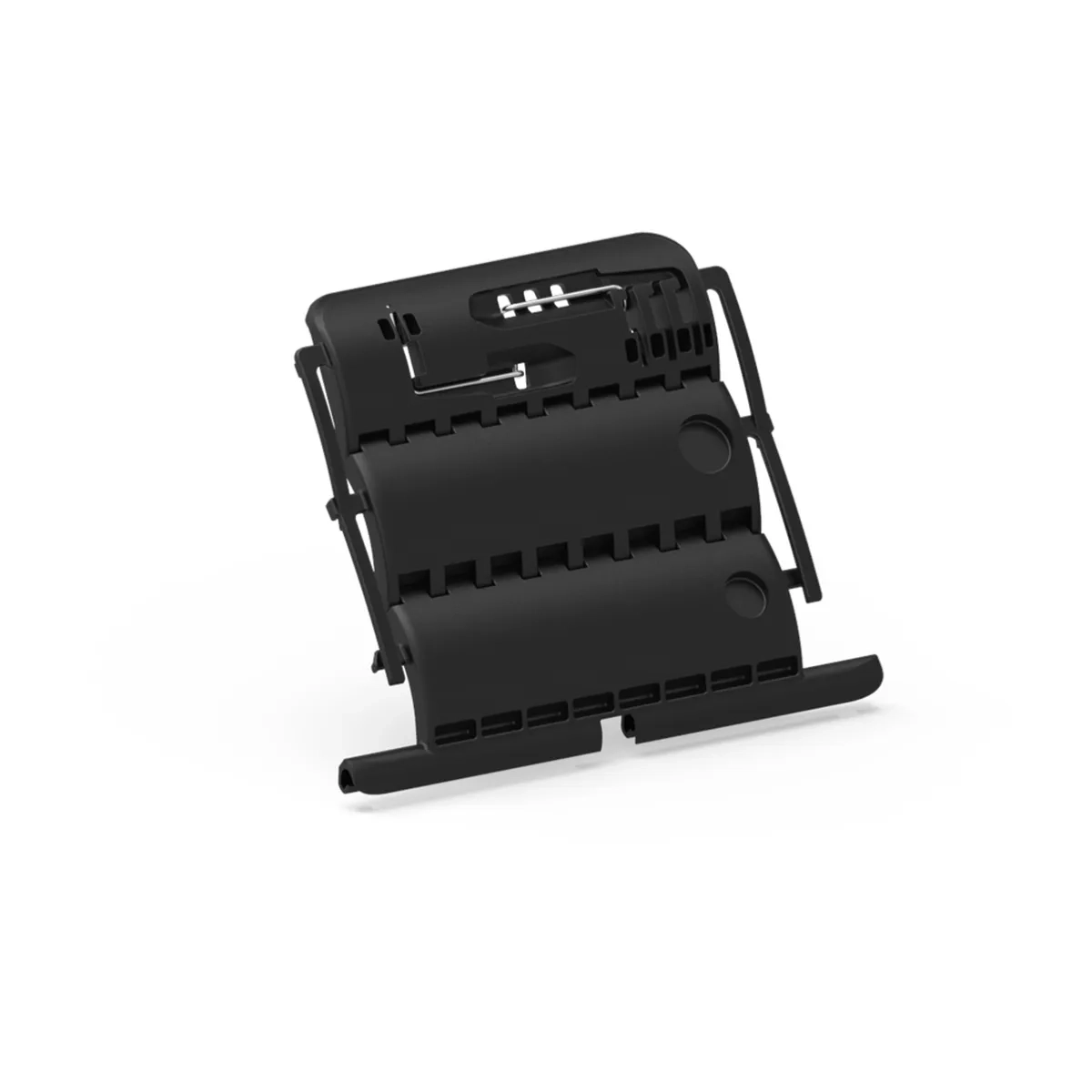 L'attache rigide pour volet roulant Clicksur est composé de maillons assemblés par simple accrochage sur le principe de charnière. Quatre trous de 4,5 mm de diamètre permettent une liaison par vis ou rivet pop sur les axes d'enroulement.