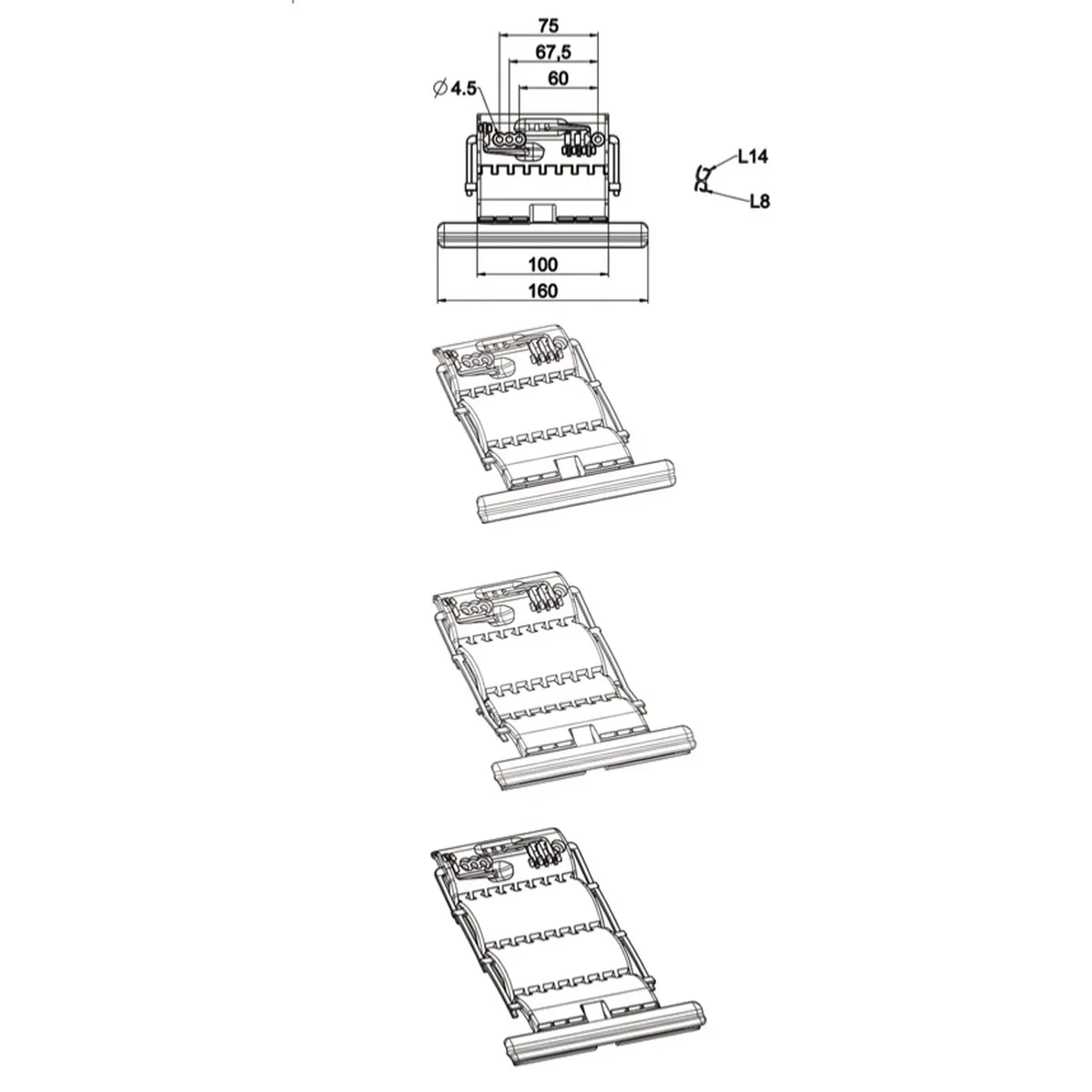 - Longueur du profil plastique : 160 mm