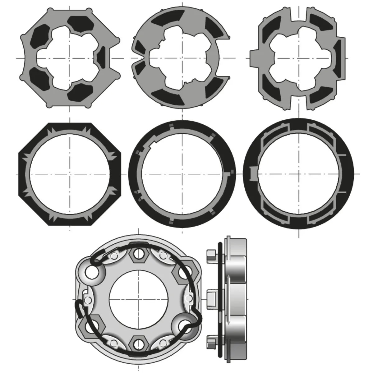 - roue et couronne pour tube ZF64 (référence MVX-RP64), F2000 (référence MVX-RP62), Octo 60 (référence 410332)