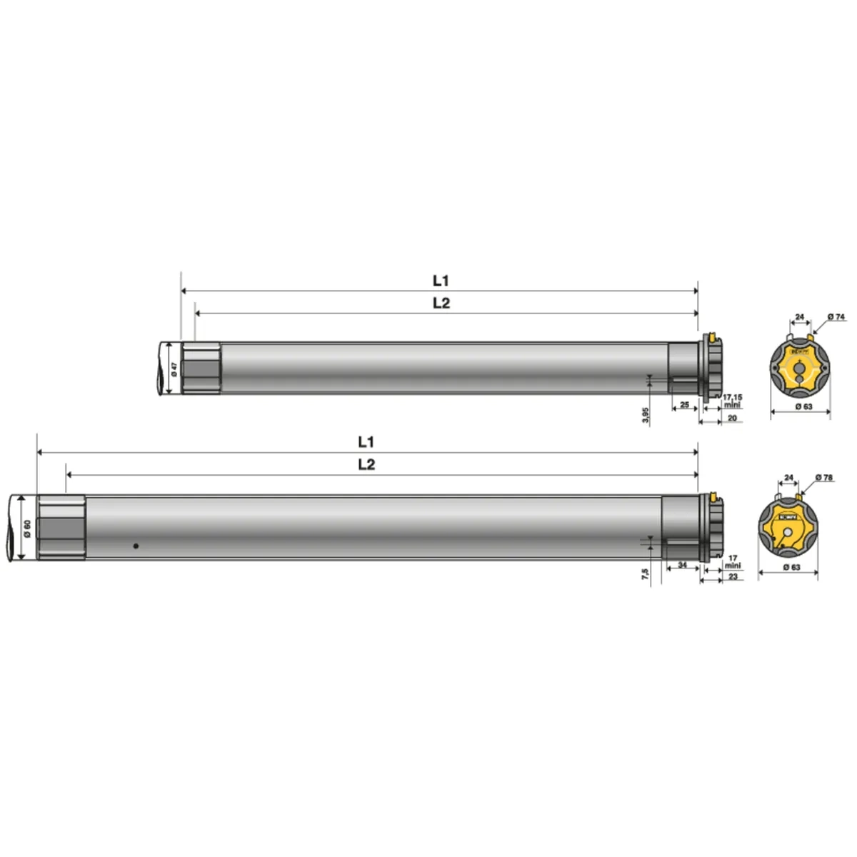 Moteur de store banne tubulaire Somfy filaire LT 50, 6 Nm / 32 trs