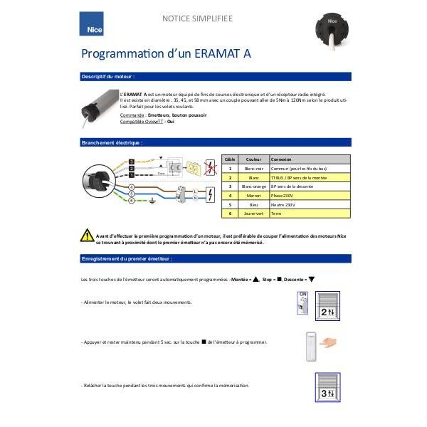Moteur volet roulant radio Nice ERA MAT MA 08 Nm / 17 trs, avec câble