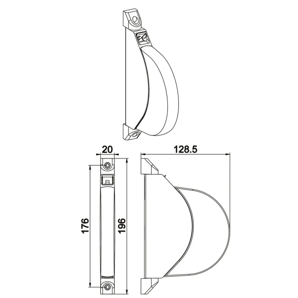 L'enrouleur de sangle est composé d'un boitier pivotant sur deux équerres.