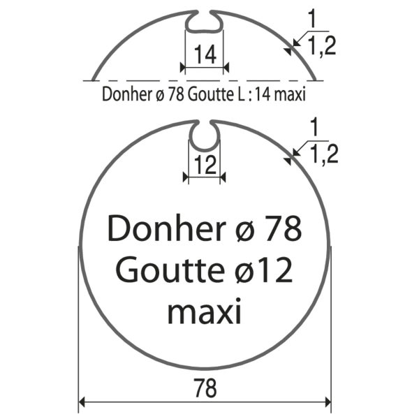 Roue et couronne pour moteur Ø60 sur tube Ø78 mm à goutte (Dohner)