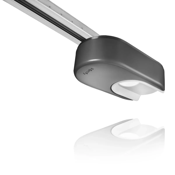 Ce rail préassemblé composé d'un segement monobloc d'une longueur de 2,9 mètres s'emboîte directement dans la tête du moteur. Grâce à une transmission par chaîne, il offre une durabilité optimale. Le réglage de la tension de la chaîne s'effectue simplement via un écrou de réglage, facilitant l'ajustement. De plus, un dispositif de débrayage manuel par cordelette est intégré.