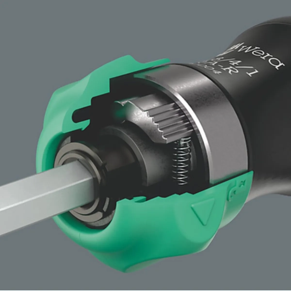 Grâce à son cliquet à fine denture, le vissage devient rapide, précis et presque sans effort. Le changement de sens est intuitif : bague vers la droite, on visse à droite ; bague vers la gauche, on visse à gauche. Besoin d’une précision maximale ? Il suffit de placer la bague sur « 0 » pour désactiver le mécanisme.